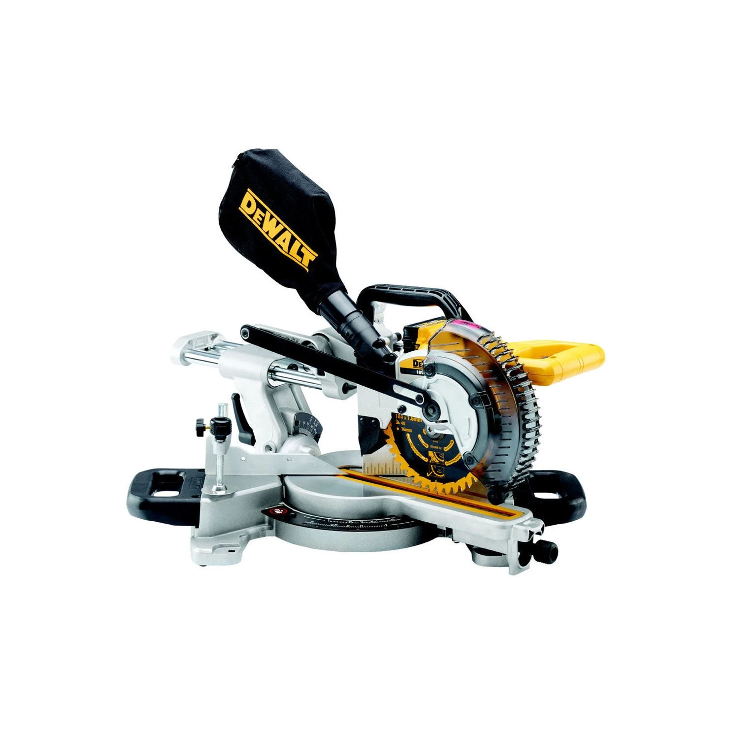 The DEWALT DCS365N 18V 184mm XR Slide Mitre Saw is a high performance tool with a robust build. Ideal for professional carpenters, joiners and kitchen fitters. The powerful motor can deliver a blade speed of 3750rpm allowing you to make long, accurate cuts quickly in thick boards. The 65mm fan cooled motor with replaceable brushes provide maximum power in hardwood and the aluminium base gives stability so it is perfect for accurate intense work. Horizontal rails create additional capacity for larger materials and the dual fence mechanism provides maximum support in large material cuts at any angle or combination of angles. This saw can be set up quick and easy thanks to the mitre and bevel angle detents and productivity when using this saw is increased too due to the XPS Shadow line cut indicator giving fast and accurate alignment of the blade while illuminating the workpiece.