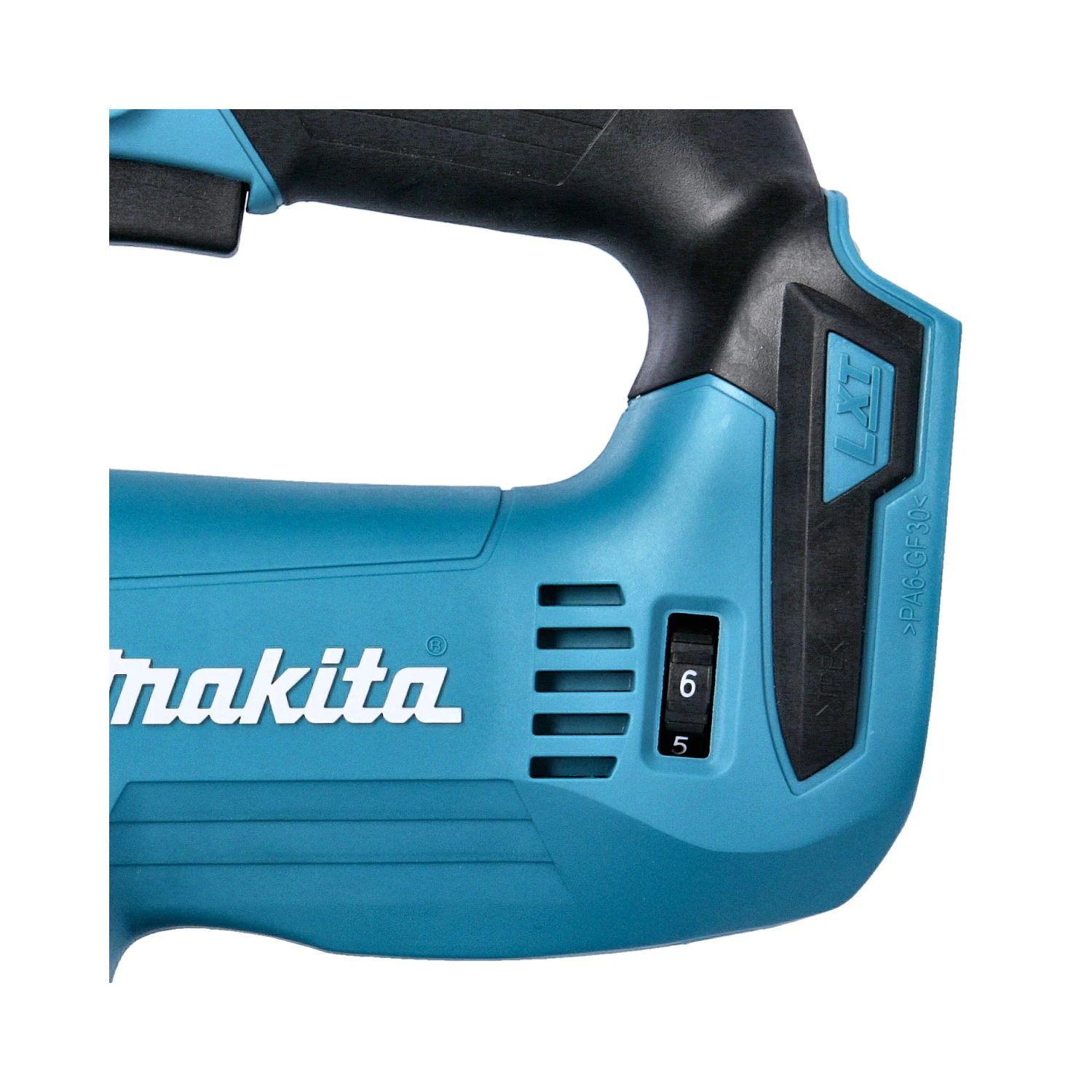 The Makita DJV182 is a top handle cordless jigsaw with brushless motor which produces a greater measure of torque per weight. More torque means less power required so longer battery life less motor friction. With twin LED Joblightsand a Blower function at the front end, your cutting line will remain illuminated and free of sawdust at all times. The Tool-less Blade Change is a handy feature when changing hot blades, just pull back lever and the blade drops out. Trigger switch with lock on button provides the same excellent operability as AC models. The handle is of rubberised material which cuts down on vibration and give excellent grip with anti-slip dimples. Located at the rear of machine for easy operation is the Variable Speed Dial to suit blade speed to various applications.