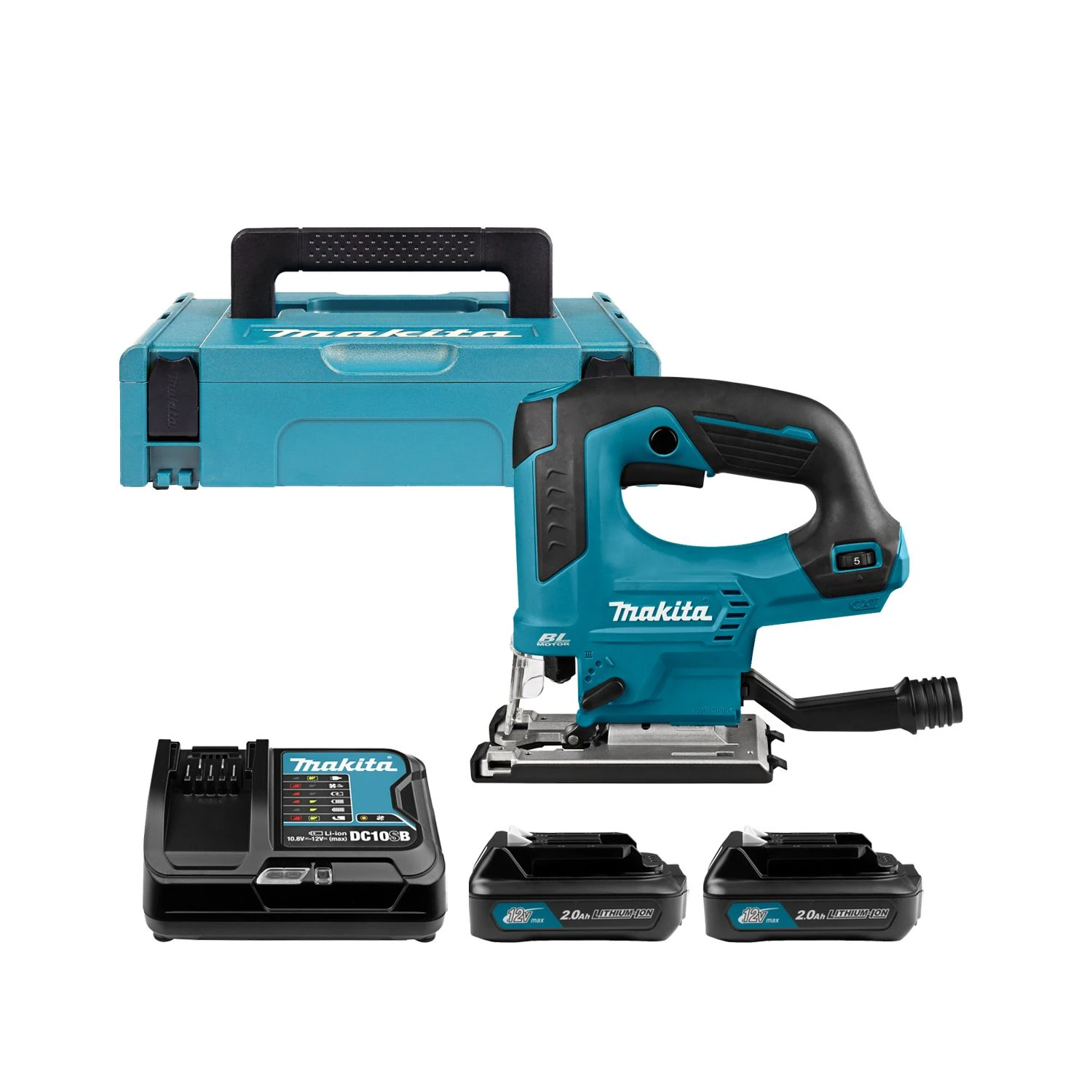 The Makita JV103D 10.8V CXT Lithium-Ion Brushless Top Handle Jigsaw delivers fast and efficient cutting, with a compact design that’s engineered for ease-of-use and manoeuvrability. The JV103D features a top “bow” handle design and is ideal for woodworkers, cabinet makers, remodelers, and general contractors. Makita 10.8V CXT Lithium-Ion slide-style batteries provide improved balance and ergonomics over pod-style batteries, and for convenience the batteries include an on-board L.E.D. charge level indicator.