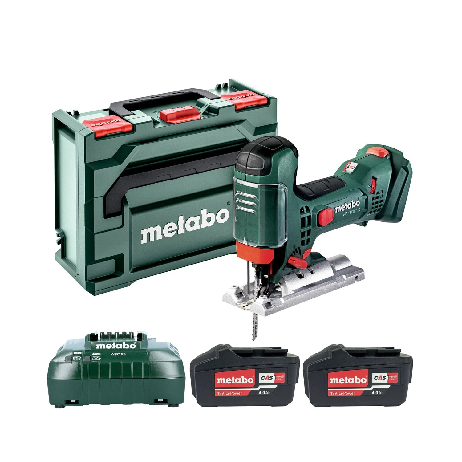 The Metabo STA18LTX100 18v Li-ion Body Grip Jigsaw is extremely handy due to its small handle size and soft-grip surface. It delivers precise and material-matched sawing due to the variable stroke rate, pendulum stroke and low-lying saw blade guidance with spring support. The Metabo “Quick” for changing saw blades means blades can be changed without tools and with automatic ejection. The jigsaw completes simple bevel cuts thanks to a footplate with rest points that can be adjusted without tools. It has a selectable shaving blower function that ensures free view of cutting line.
